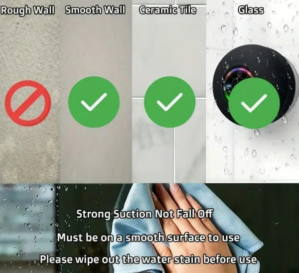 Attach the suction cup to any clean, flat surface โ€” tile, glass, or mirror โ€” for a secure grip.